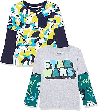 Amazon Essentials Disney | Marvel | Star Wars T-Shirt 2 in 1 a Maniche Lunghe (in precedenza Spotted Zebra) Bambini e Ragazzi, Pacco da 2