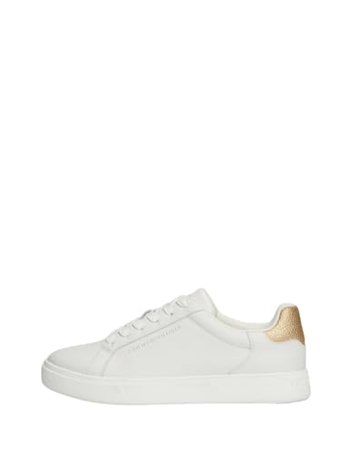 Tommy Hilfiger Donna Sneakers Essential Court Metallic in Pelle, Bianco (Ecru), 38