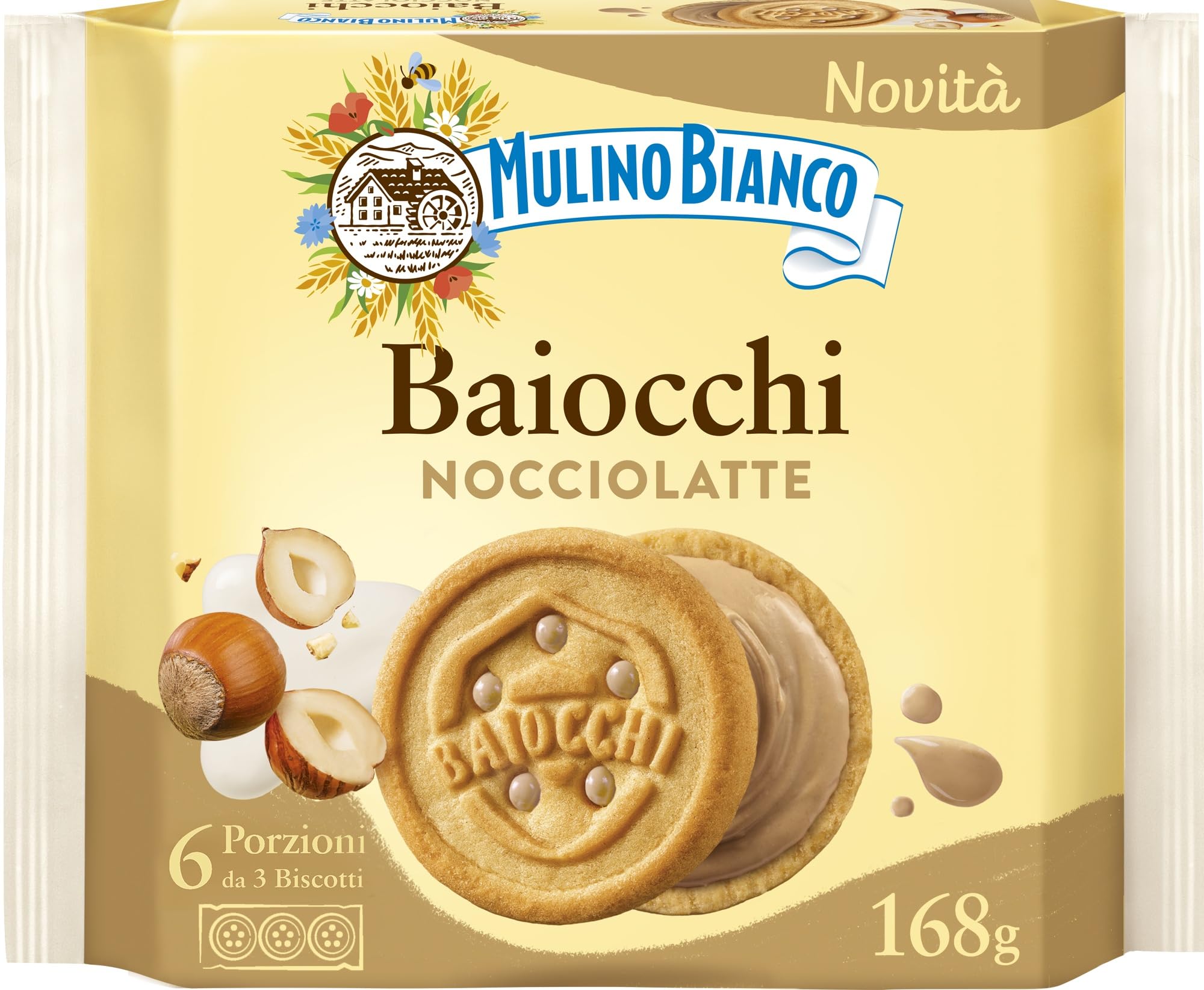 INGREDIENTI E ALLERGENI - farina di FRUMENTO, zucchero, cioccolato extra fondente 14%* [pasta di cacao, zucchero, emulsionante: lecitine (SOIA), aroma naturale vaniglia], olio di girasole, amido di FRUMENTO, BURRO, cacao 2%*, cioccolato 1,8%* (zucchero, pasta di cacao, cacao magro, aroma naturale vaniglia), cacao magro 1,2%*, agenti lievitanti (carbonato acido d’ammonio, carbonato acido di sodio), aromi (LATTE), sale. *Percentuali espresse sul prodotto finito. Può contenere tracce di FRUTTA A GUSCIO, SENAPE, SESAMO e UOVA