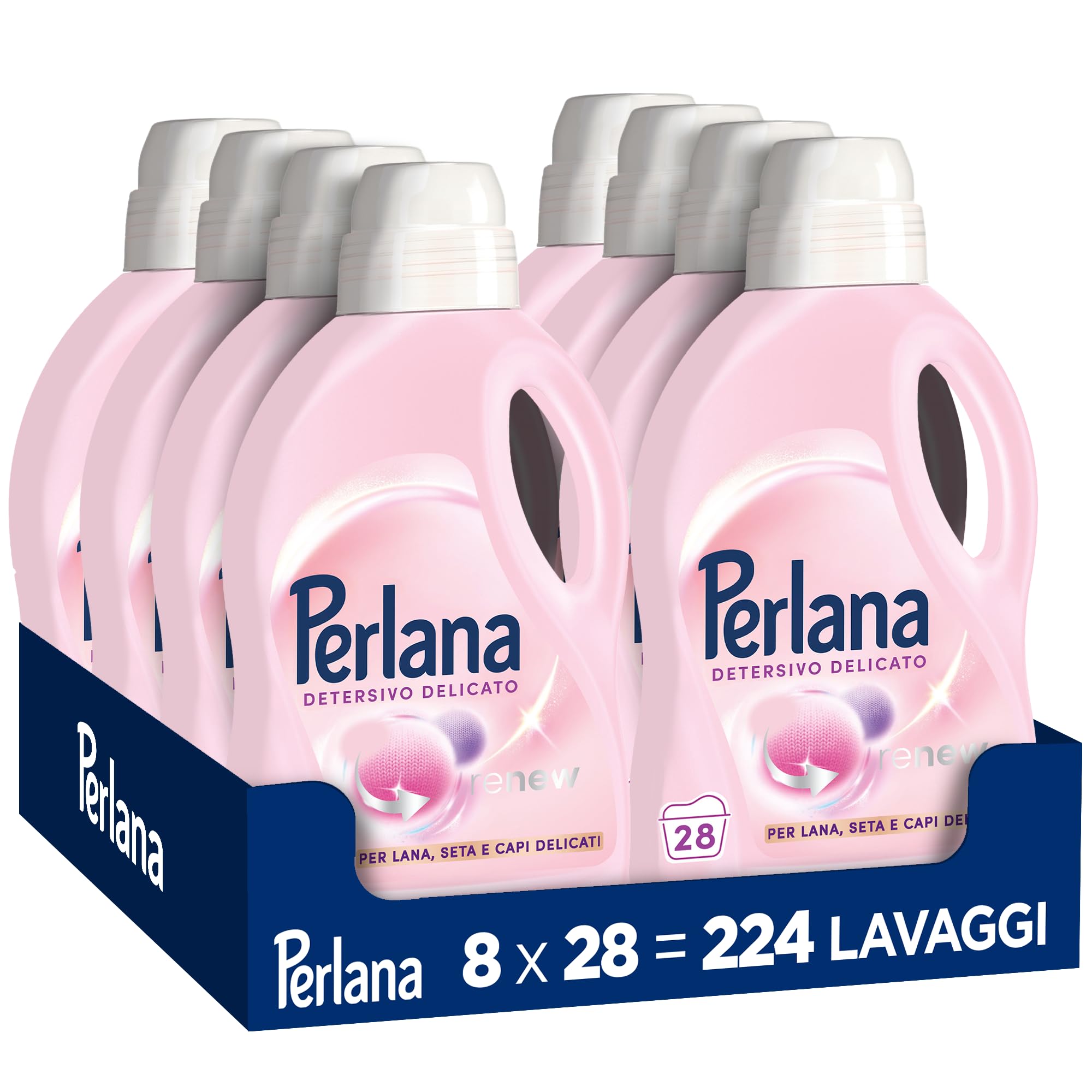 Perlana Detersivo Delicati (8 confezioni da 28 lavaggi), Detersivo lavatrice liquido per lana, seta e delicati, Detersivo delicati per effetto cashmere e fibre rinnovate
