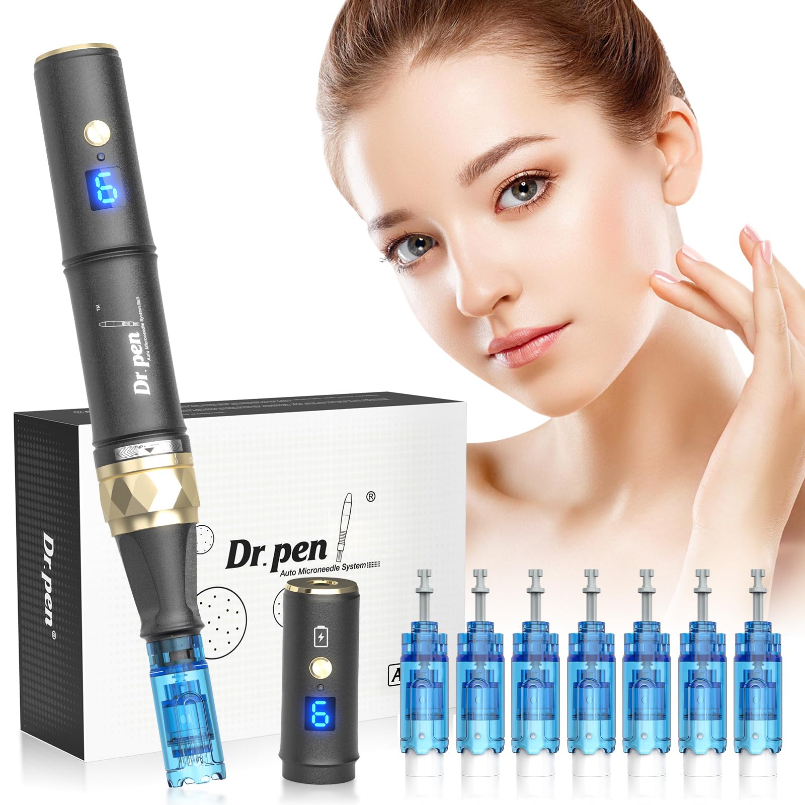 Dr. pen Ultima A10 Microneedling Pen - Dermaroller viso, Microneedling capelli per cicatrici, rughe, macchie, crescita dei capelli, lifting e rassodante - Include 5 cartucce (12/24/36/42 Pins/Nano-R)
