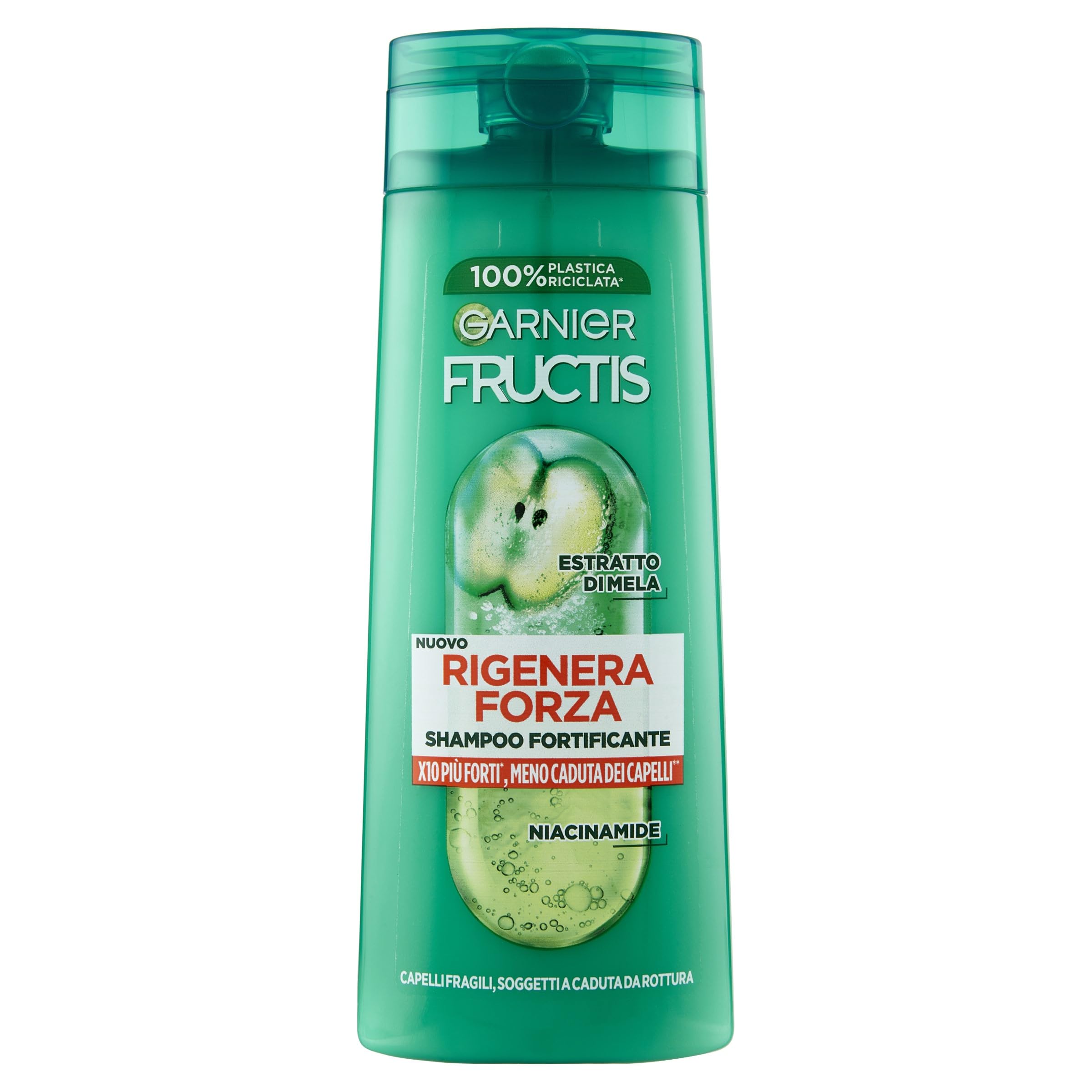 Garnier Fructis Shampoo Fortificante, Per Capelli Fragili, Anti-Rottura, Effetto Rinforzante, Con Estratto di Mela e Niacinamide, Rigenera Forza, 250 ml